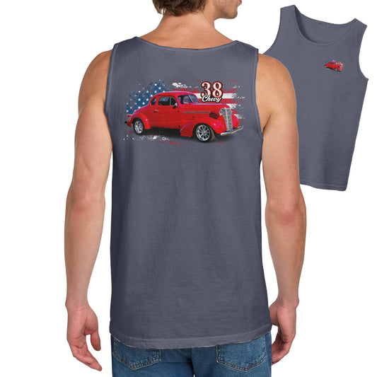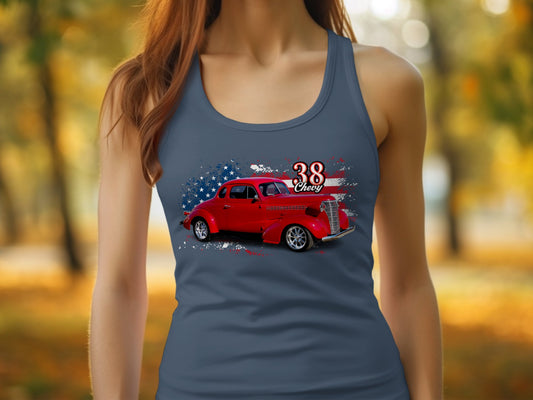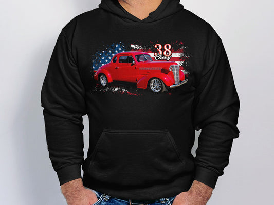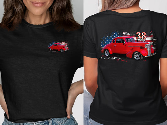 38 Chevy Classic Car with American Flag Unisex T-Shirt