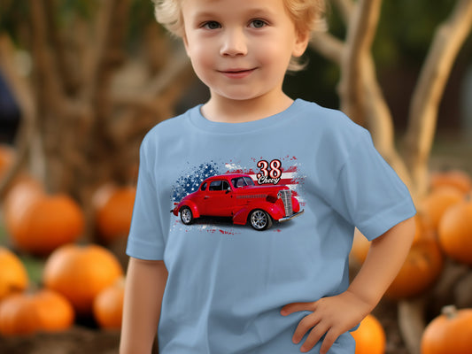38 Chevy Classic Car with American Flag Toddler T-Shirt
