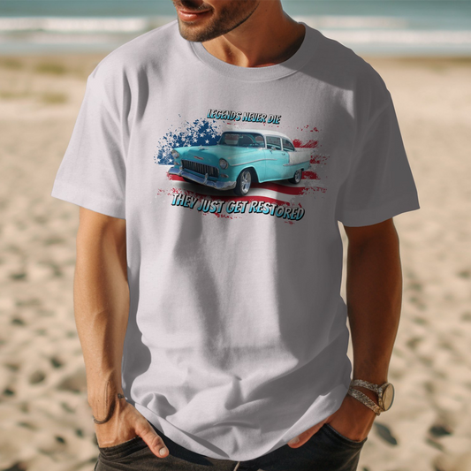 1955 Belair Legends Never Die They Just Get Restored Unisex Tee